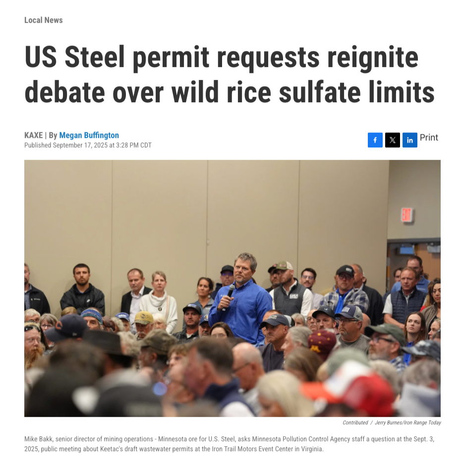 On September 3rd the Minnesota Pollution Control Agency (MPCA) held a public hearing about draft pollution permits for U.S. Steel - Keetac, a taconite minE here on Minnesota’s Iron Range.