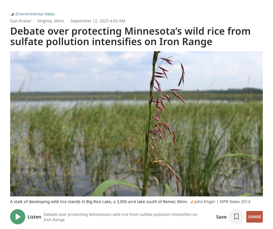 Draft permits from the MPCA — if approved and enforced — would limit pollution discharged into our waterways and would force compliance with standards created to protect manoomin or wild rice.